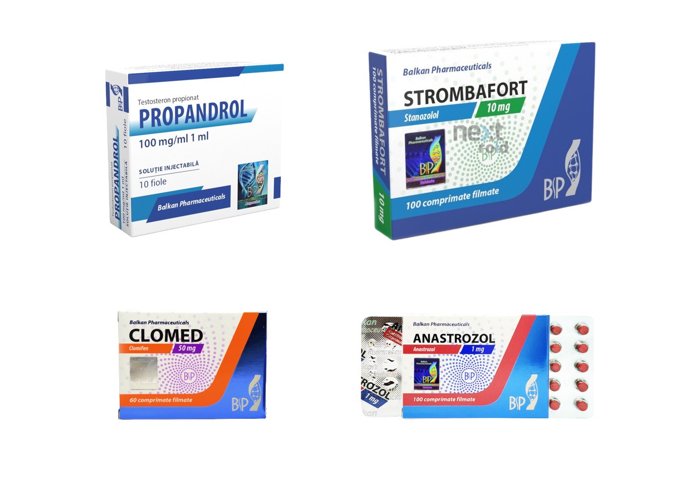 - Способ приема: Тестостерон Пропионат вводится внутримышечно, Стромбафорт, Анастрозол и Кломид принимаются перорально (внутрь) с водой.